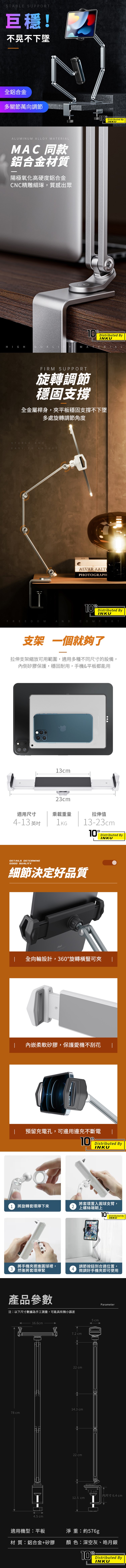 拉伸支架縮放可用範圍,適用多種不同尺寸的設備,內側矽膠保護,穩固耐用,手機&平板都能用。