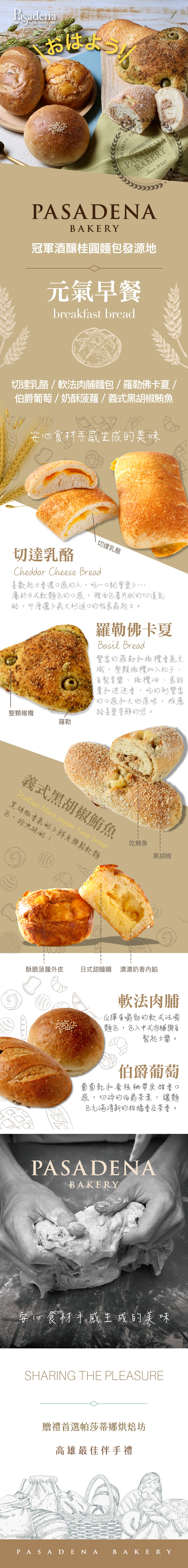 商品規格:切達乳酪約100g以上/入、軟法肉脯約125g以上/入、羅勒佛卡夏約80g以上/入、伯爵葡萄約100g以上/入、奶酥菠蘿約90g以上/入、義式黑胡椒鮪魚約100g以上/入