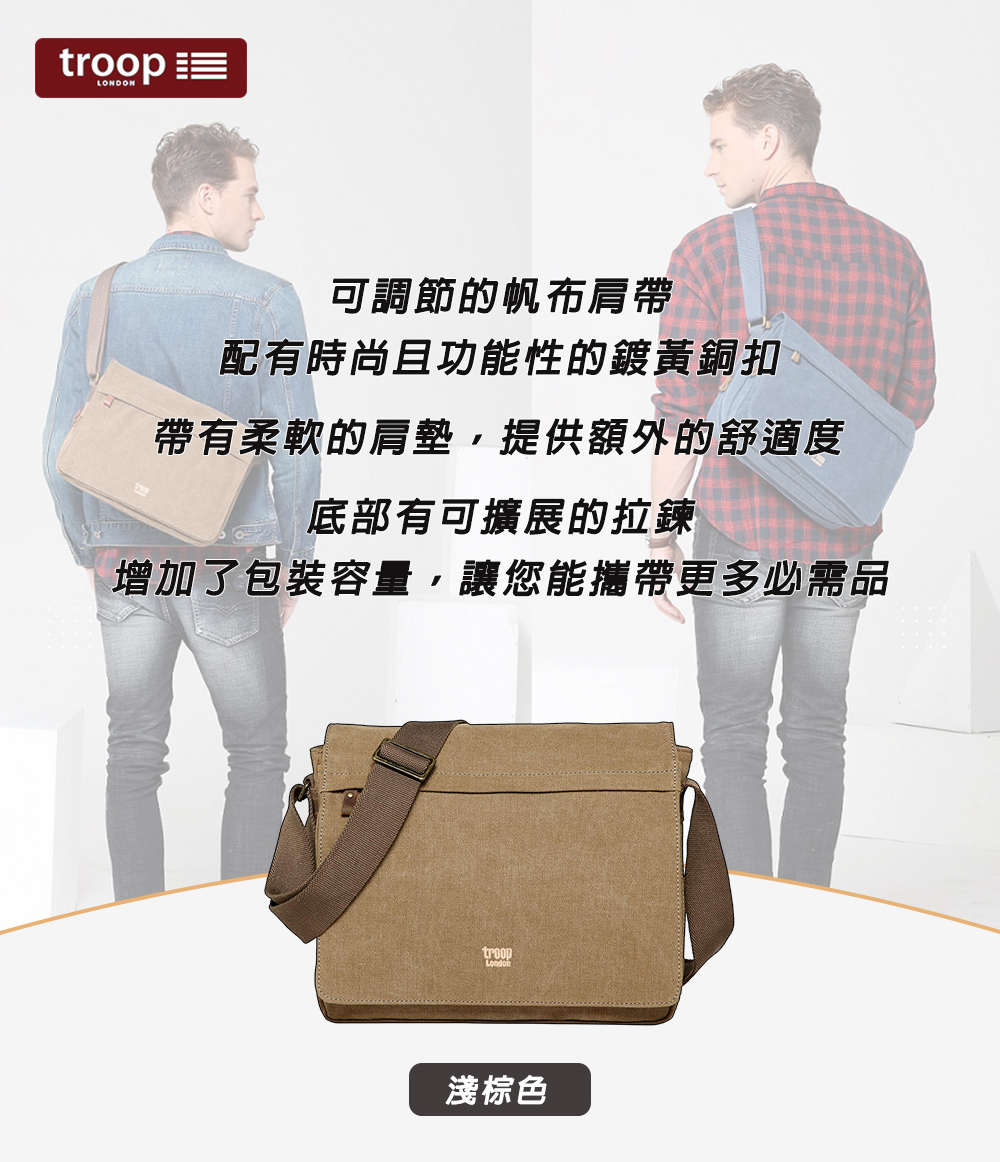 .可調節的帆布肩帶,配有時尚且功能性的鍍黃銅扣