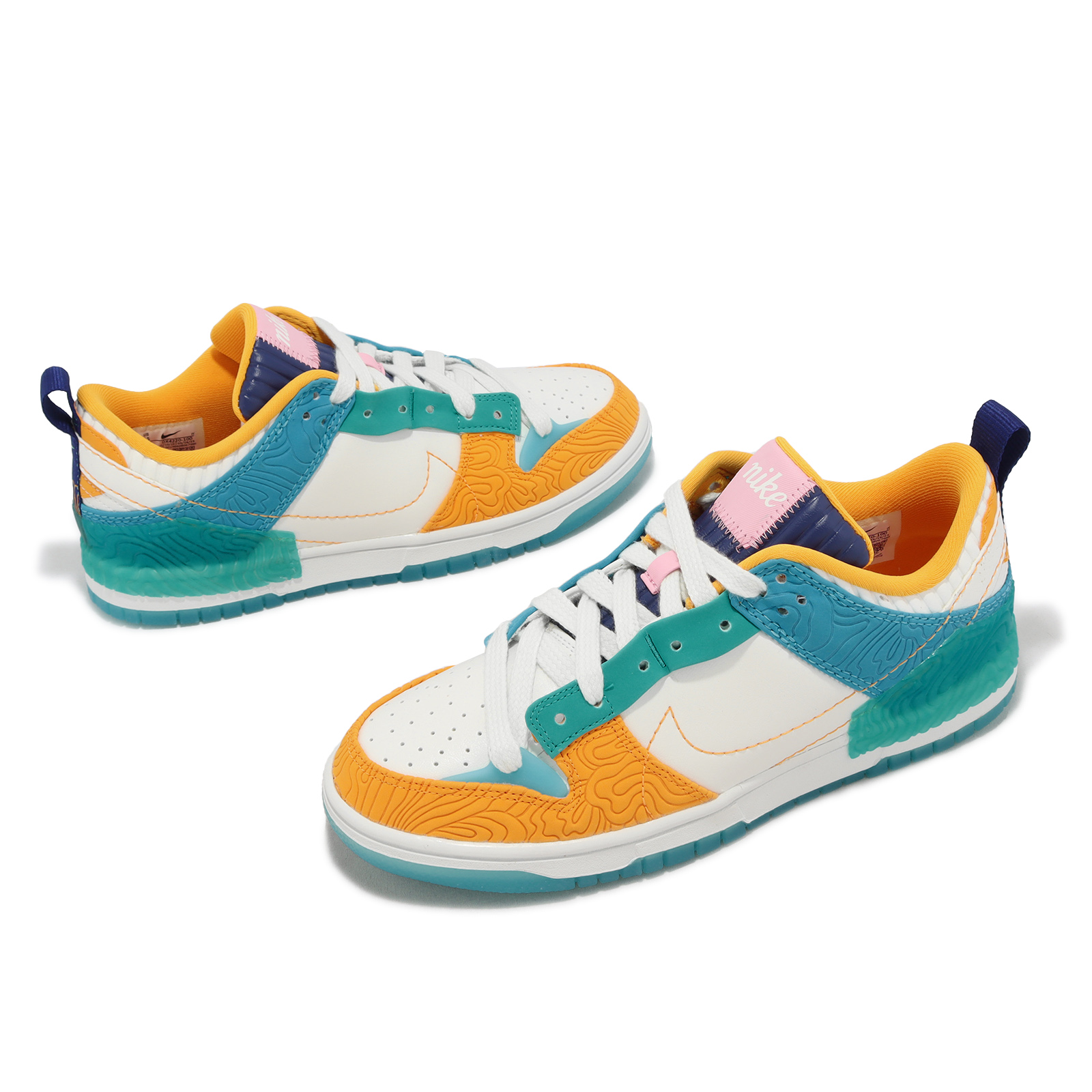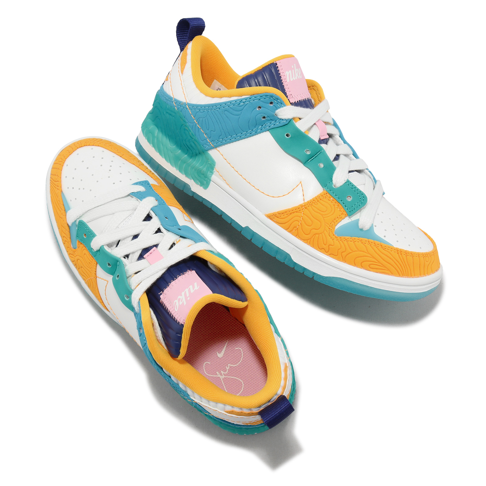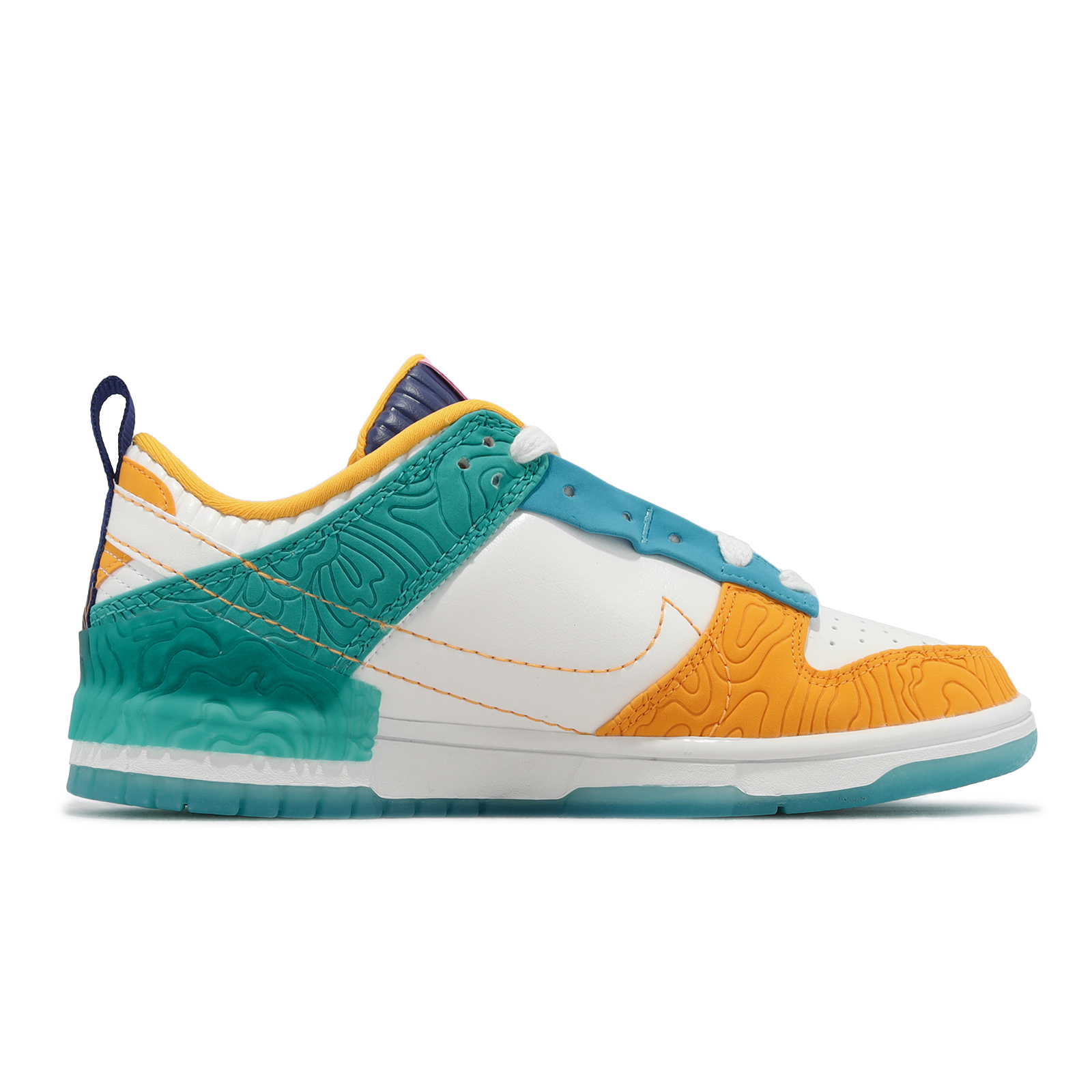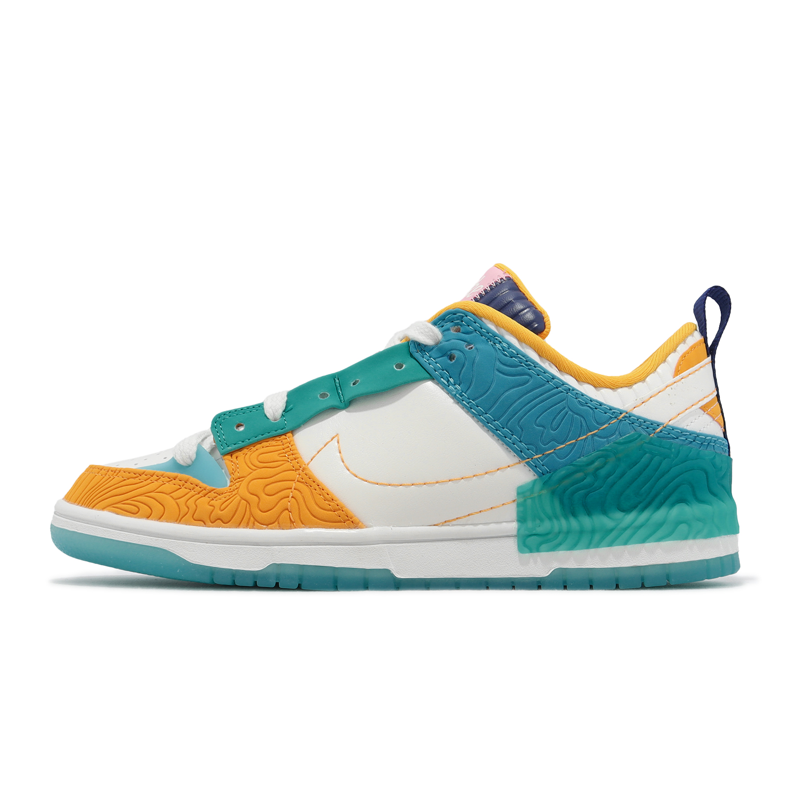 品牌: NIKE型號: DX4220-100品名: SWDC Wmns Dunk Low Disrupt 2版型: 版型正常* 雙層鞋帶孔與可替換鞋帶,具備多樣化穿著方式,可供運動鞋愛好者打造專屬個性風格。* 鞋面以白色為基底搭配藍、綠、橘色拼接設計,打造充滿活力風格。* 後跟邊條設計,額外防護且經久耐穿。* 部分材質使用環保原料製成。