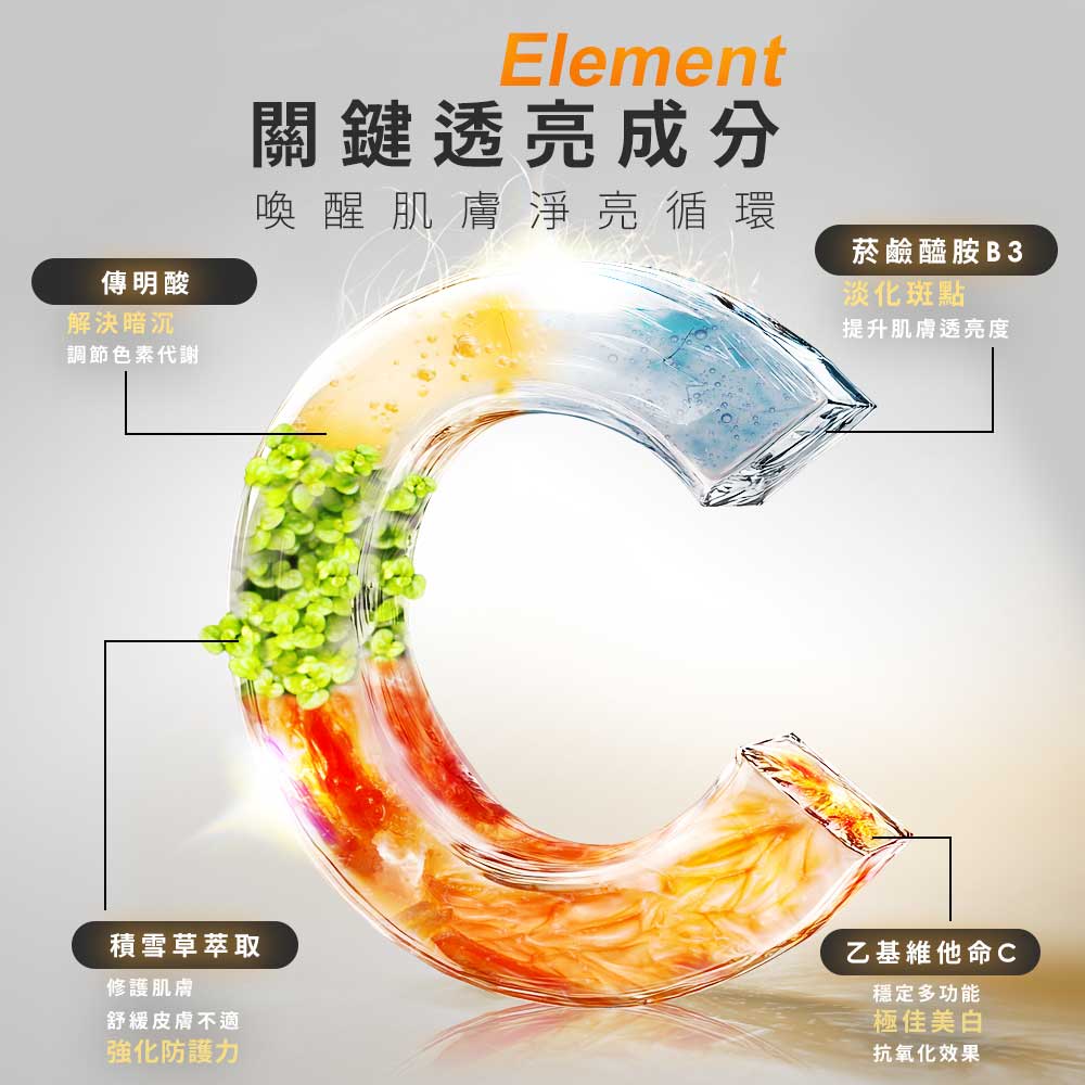 瞬效複合美白配方,啟動肌膚淨白機制。