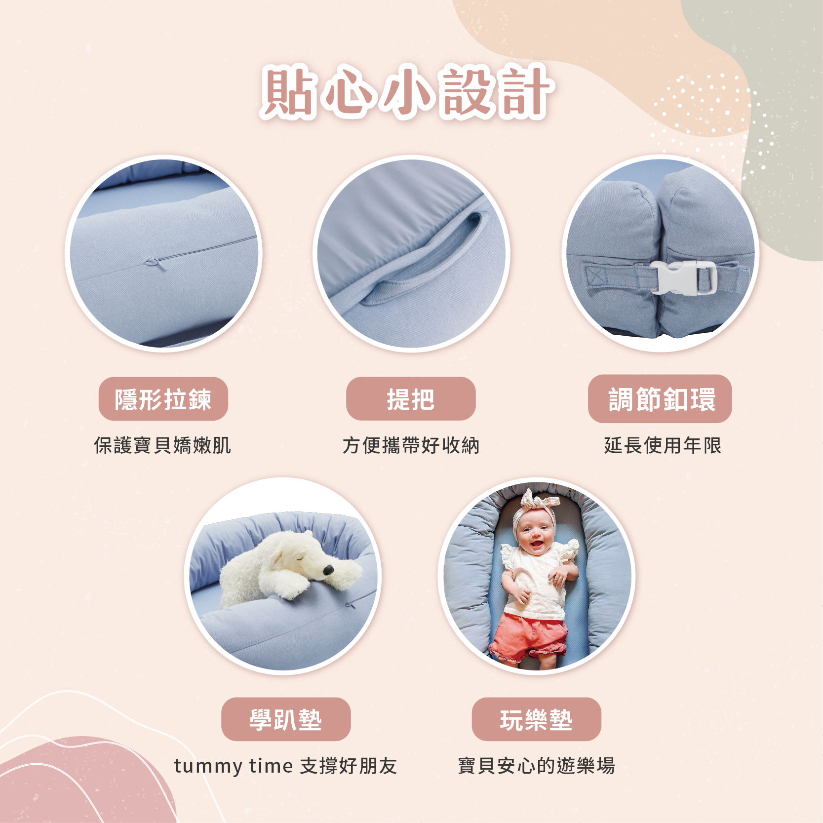 [清洗方式] 支撐底版不可洗;床圍枕芯-太陽曝曬殺菌,可局部手洗