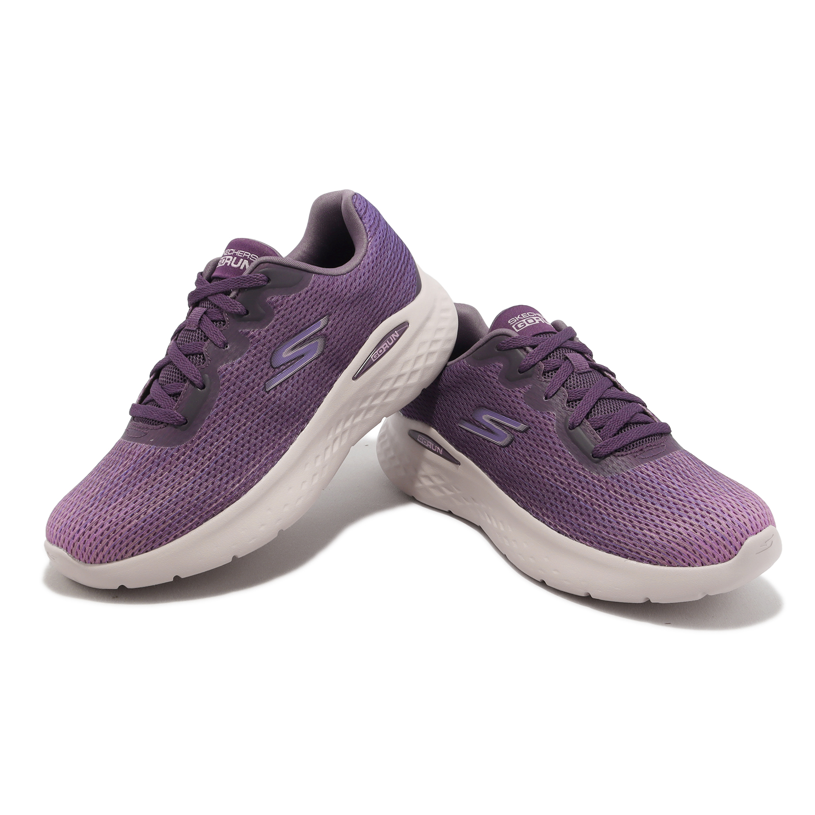品牌: SKECHERS型號: 129430-MVPR品名: Go Run Lite-Galaxy版型: 版型正常* 鞋面採用漸層網布材質,柔軟舒適,良好透氣。