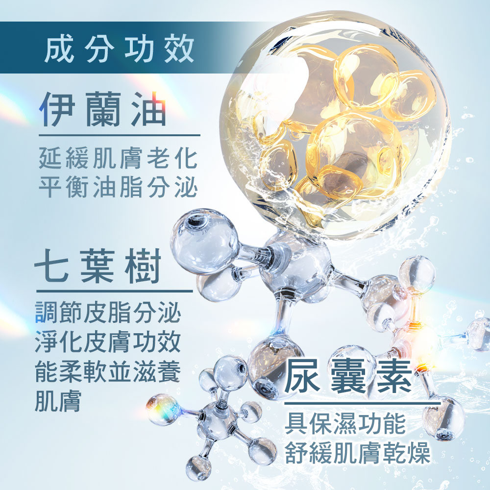 成分:薏仁、金縷梅、玻尿酸、七葉樹、依蘭精油。