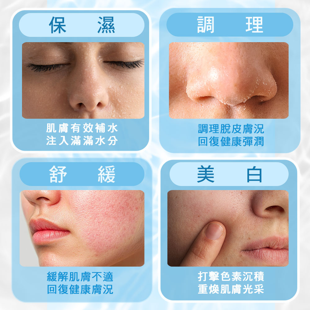 使用方法:肌膚清潔後塗抹於臉上,溼敷保溼效果更佳。