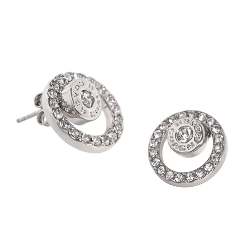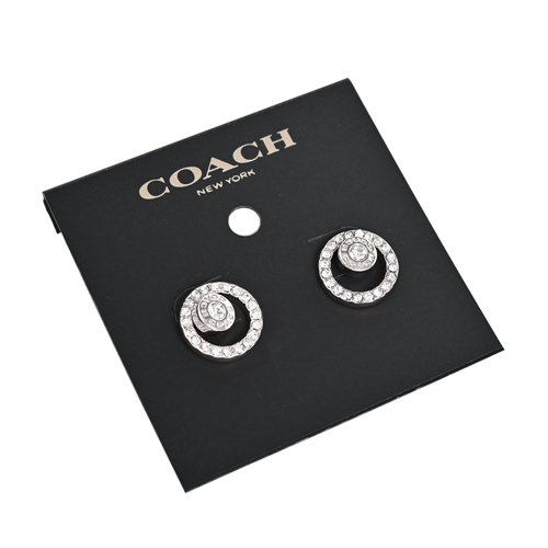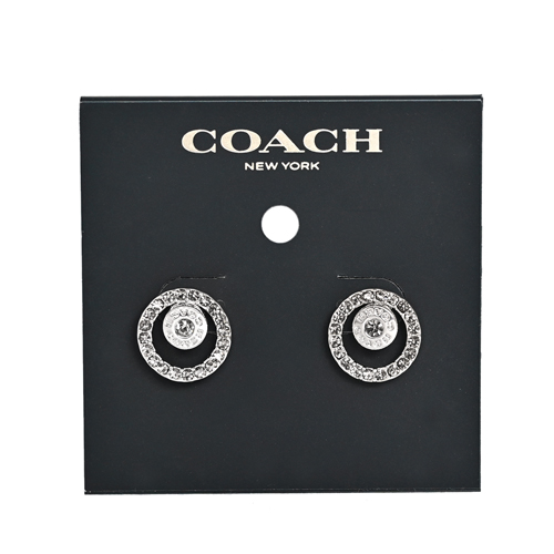 COACH耳環配飾,巧思以耳針串接單鑽圓牌及圓形貼鑽外框,可單一搭配,針式配戴便利。