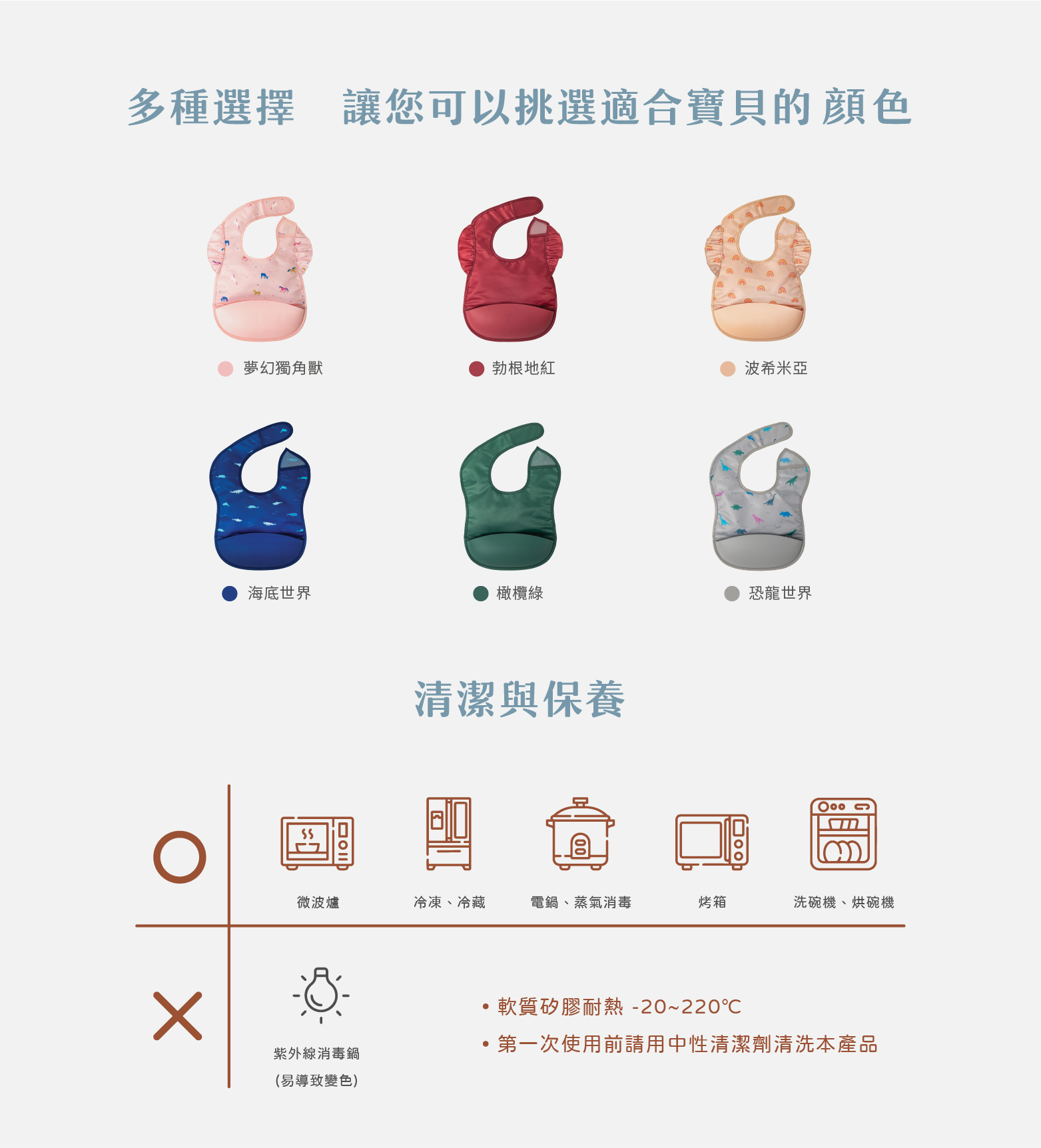 清潔方式:一般消毒鍋、洗碗機、烘碗機、微波爐,請勿使用紫外線消毒鍋,避免影響矽膠產品顏色有所差異。