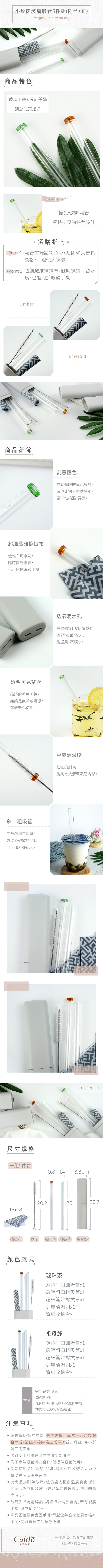 【商品規格】產品尺寸:粗吸管 直徑1.4 / 長20cm 細吸管 直徑0.8 / 長20cm 清潔刷 長20.2cm 擦拭布 18x15cm 收納盒 長20.7 / 寬3.8 / 厚2cm包裝尺寸:28.5x7x4.5cm內容物:斜口粗吸管x1 平口細吸管x1 清潔刷x1 擦拭布x1 質感收納盒x1材質:吸管-耐熱玻璃 收納盒-PP 清潔刷-尼龍毛刷+不鏽鋼握把 擦拭布-100%聚酯纖維款式:琥珀茶 / 祖母綠重量:整組103g 粗吸管25g 細吸管18g 清潔刷3g 擦拭布6g 收納盒51g產地:中國