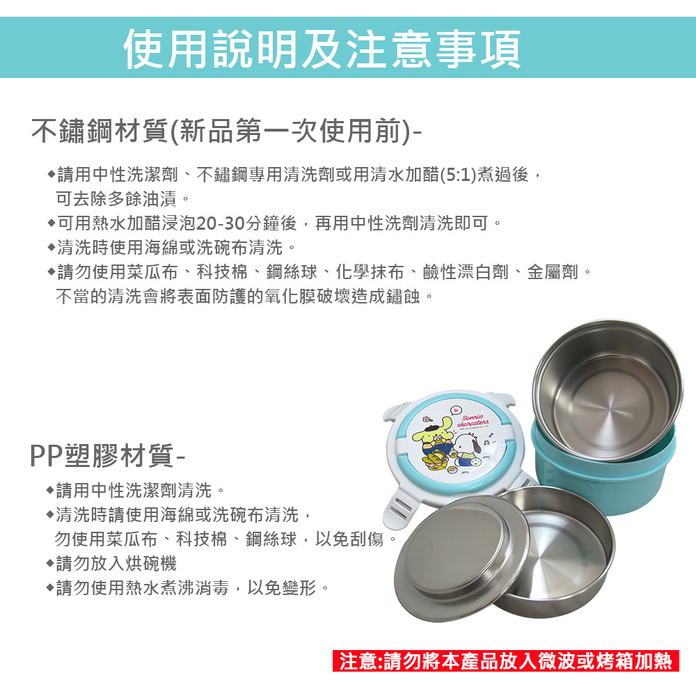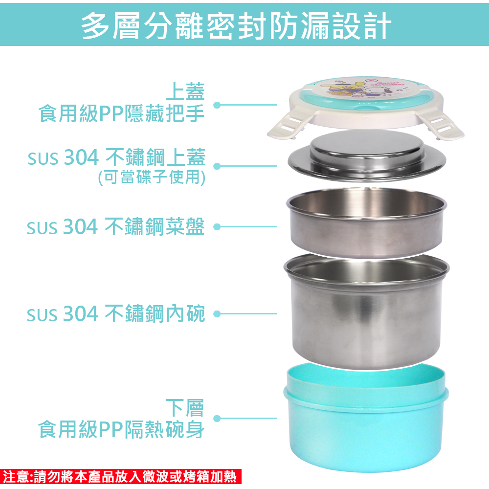 雙層隔熱構造,內外溫度隔絕,熱食不燙手內層採高級不鏽鋼,無毒無異味、經久耐用便利提把及安全扣環設計,輕鬆好攜帶內附單隔盤,可分裝飯、菜,食材不易混雜內附不鏽鋼上蓋,隔絕菜盤內食材與外殼塑膠蓋台灣設計製造,通過SGS食品級無毒安全認證