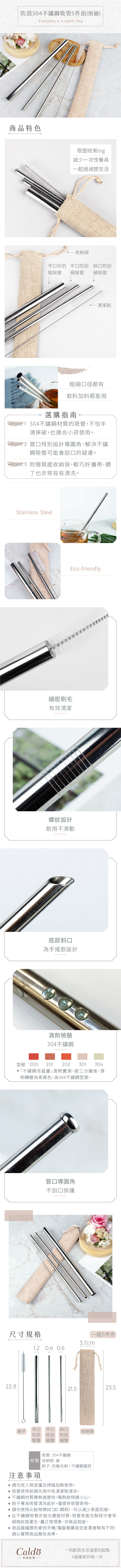 限塑政策席捲全球!減少一次性餐具,不鏽鋼吸管陪你一起過減塑生活。 .304不鏽鋼材質,不怕手滑摔破.防刮導圓角設計,保護口腔不刮口.斜口設計,便於戳破飲料封口.粗細口徑都有,珍珠加料都能吸.管身螺紋線設計,飲用不滑動.內附清潔刷,專屬清洗更衛生.附贈防塵收納袋,方便隨身攜帶.限塑令擴大,攜帶環保吸管,養成好習慣