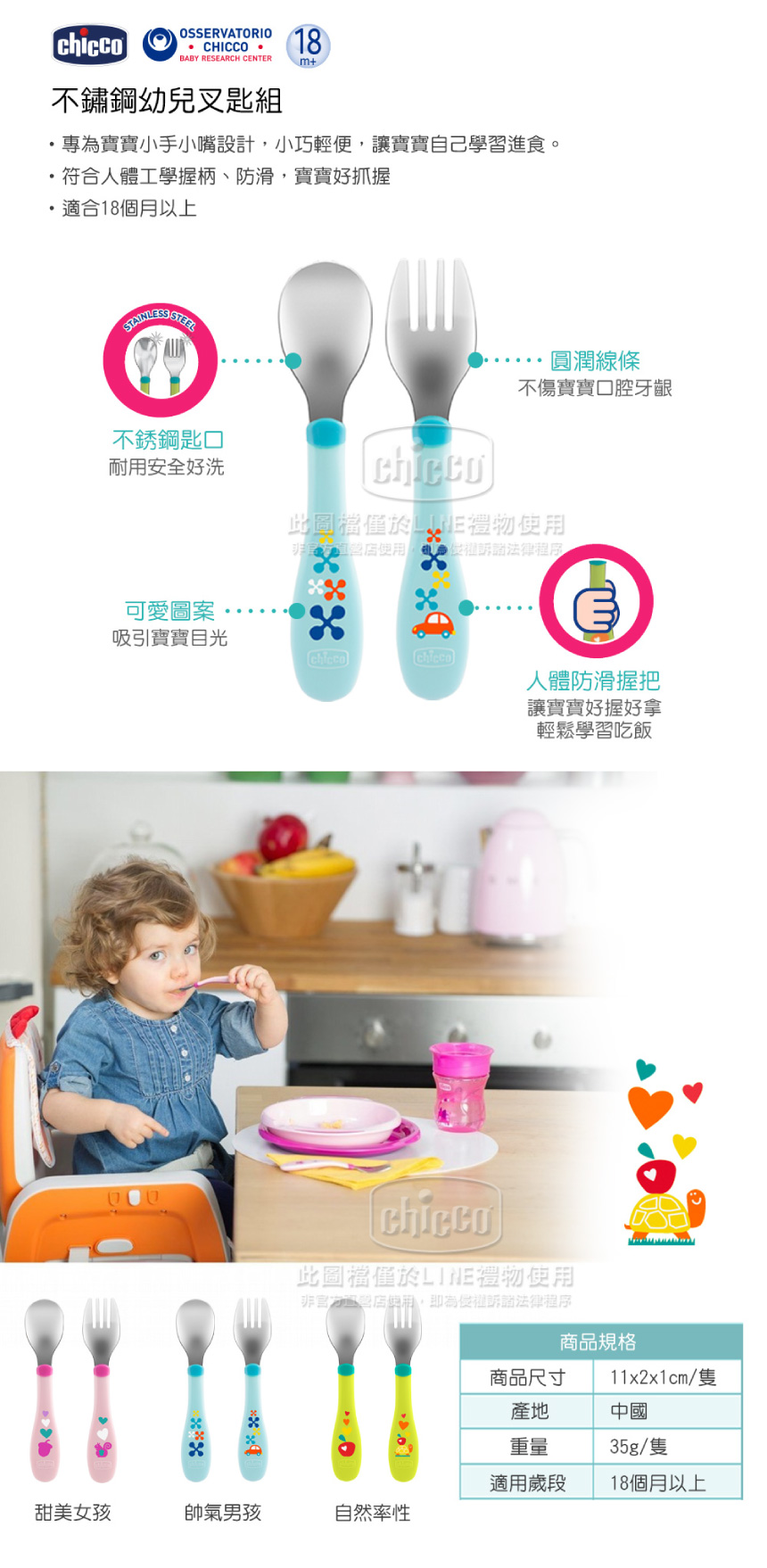 組合內容物:矽膠吸盤碗 x1、不鏽鋼幼兒叉匙組 x1、立體口袋式防水圍兜 x1