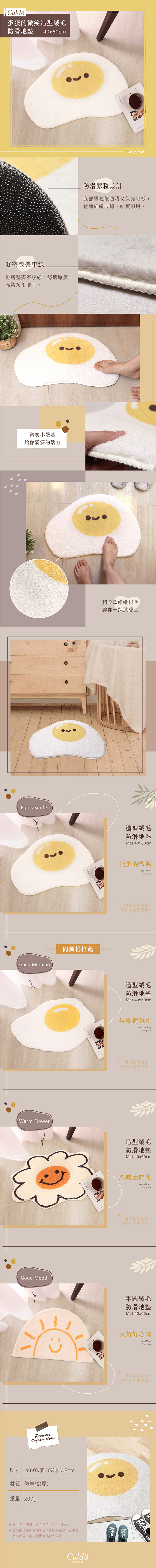 .給你大大的微笑,開啟一天.溫暖小花朵,照亮日常生活.仿羊絨材質,赤腳踩踏舒適.適合擺放於室內各處使用.短毛絨面,親膚不藏灰塵.底部防滑膠粒,保護地板.緊密的包邊車線,結實耐用.可水洗,耐磨且不易掉色