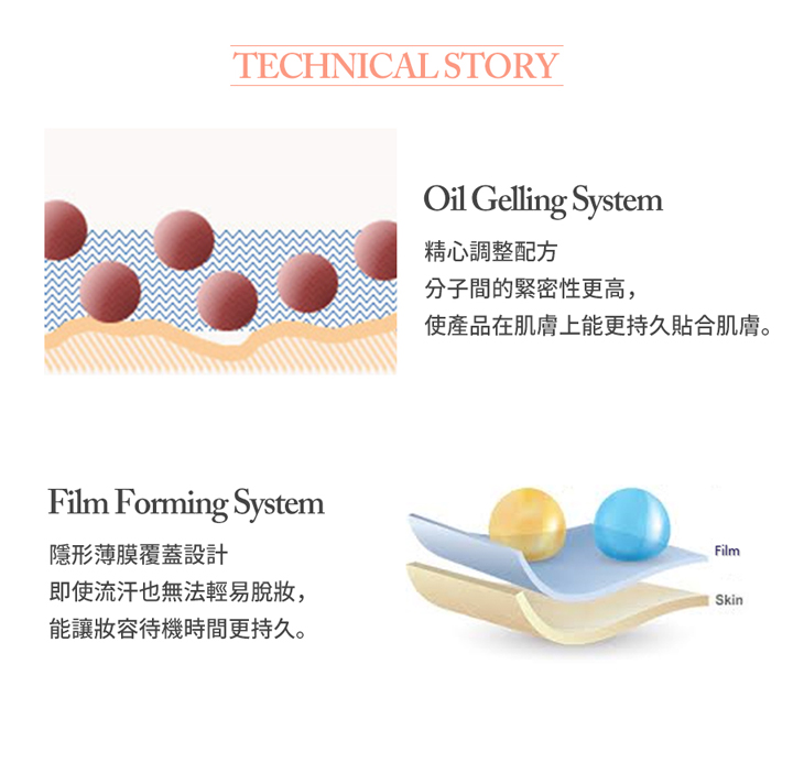 柔滑細緻緊密貼膚,長時間不卡妝、不暗沉