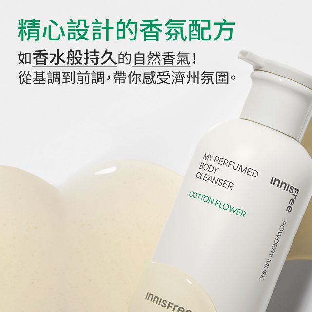 採用天然界面活性劑,泡沫細緻柔和,洗完不緊繃、香氣怡人帶來放鬆舒適的沐浴時光。舒緩療癒味道的身體乳,來自濟州自由與純淨香氛,有如擦上香水般的持久迷人 。
