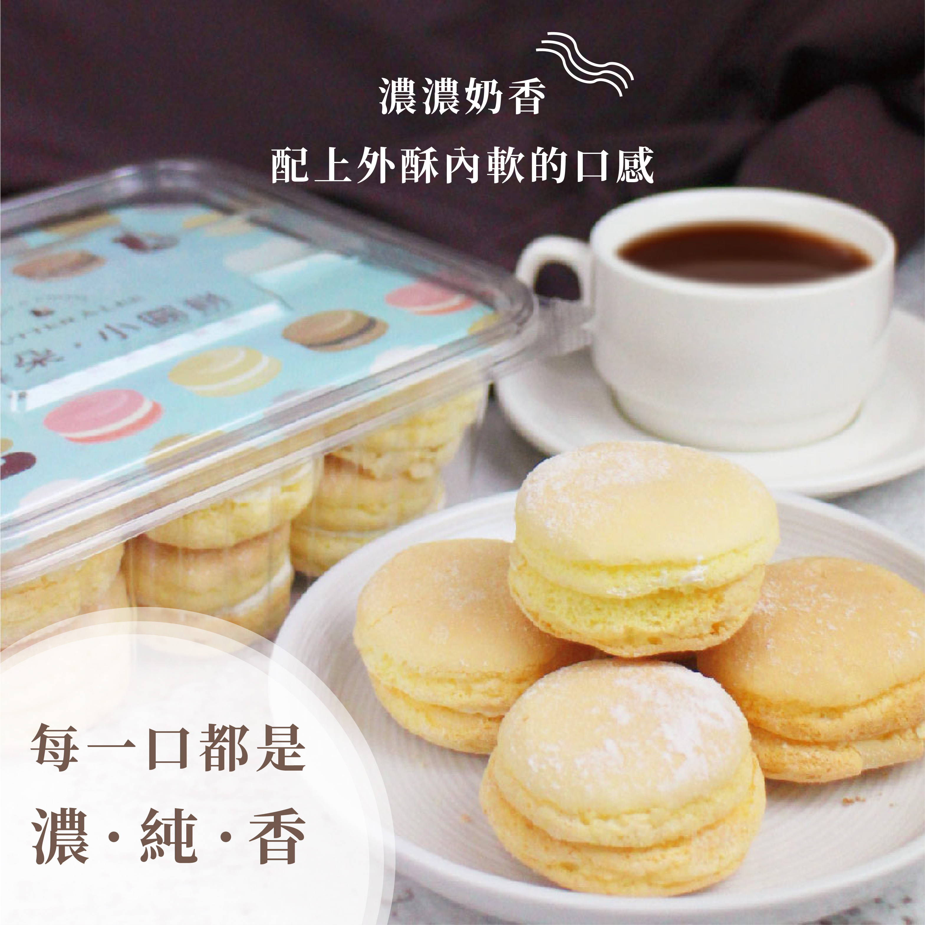{奶油雲朵馬卡龍}✔ 濃濃奶香,外酥內軟✔ 外層如雲朵般蓬鬆✔ 內餡奶油柔軟綿密,甜而不膩
