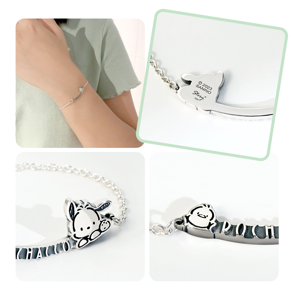 STORY故事銀飾-Pochacco經典系列-帕恰狗長牌label純銀手鍊