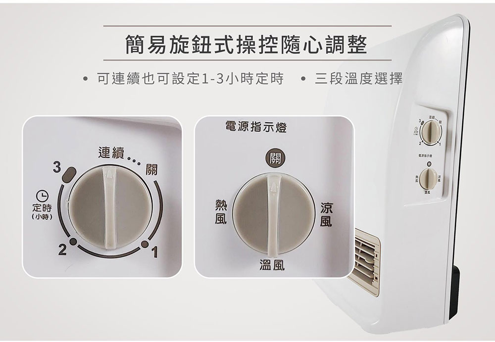 ◆奈米銀抑菌率達99.9%◆直立臥室/壁掛浴室兩用◆涼/溫/熱風3段溫控四季可用◆通過IP24防潑水檢測◆1-3小時定時+連續使用◆台灣製造+多重安全保護
