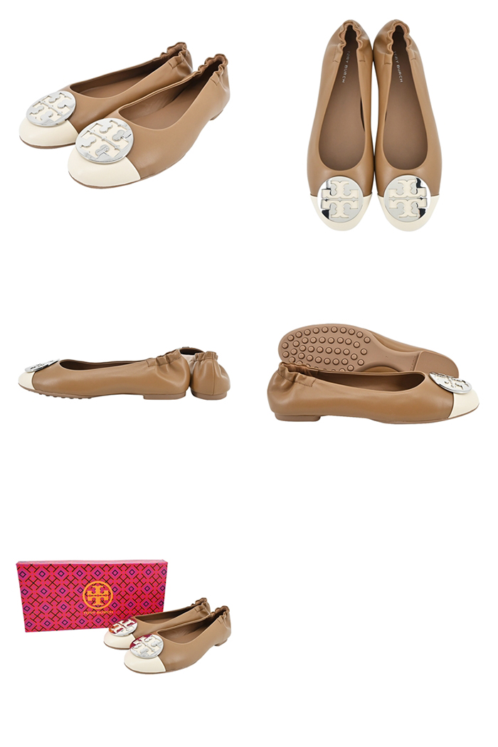 [平輸版] 【TORY BURCH】CLAIRE 皮革LOGO拼色芭蕾平底鞋(奶茶白)真品平輸 | NearMe | 線上送禮平台『獨家支援 收禮者改選禮物』