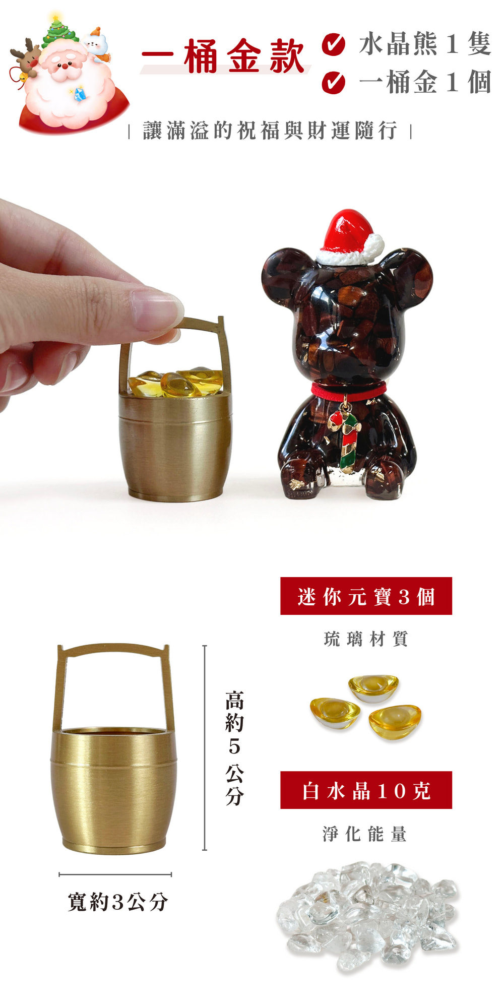 ▾ 一桶金 ▾ ◿ 材質:黃銅◿ 尺寸:高度5cm、寬度3cm⚠ 附白水晶碎石+琉璃元寶3顆