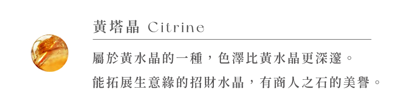 ◦ 金曜石 | 避邪, 招財, 清除負能量◦ 黑髮晶 | 避邪, 防小人, 清除負能量◦ 黃塔晶 | 招財, 生意緣, 助事業