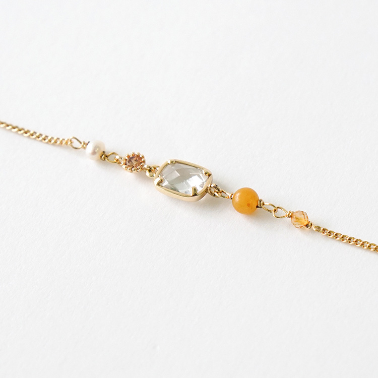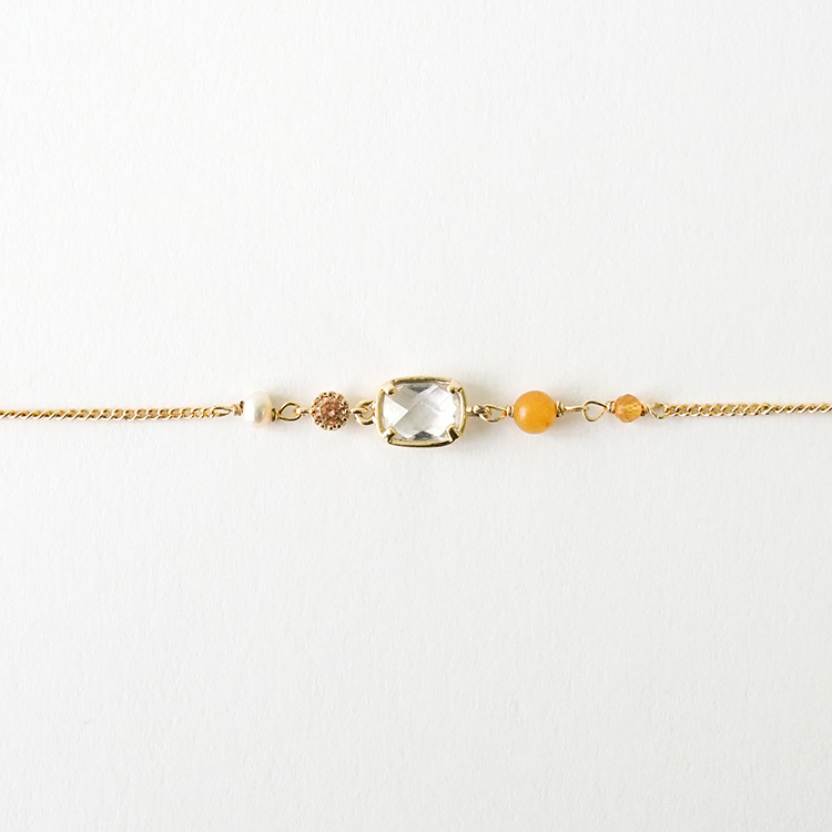 黃玉、黃水晶、彩色鋯石、水晶琉璃、淡水珍珠、黃銅鍍18K金