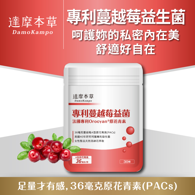 商品組合/規格:【達摩本草】專利蔓越莓益生菌(30顆/包)商品重(容)量:30顆/包