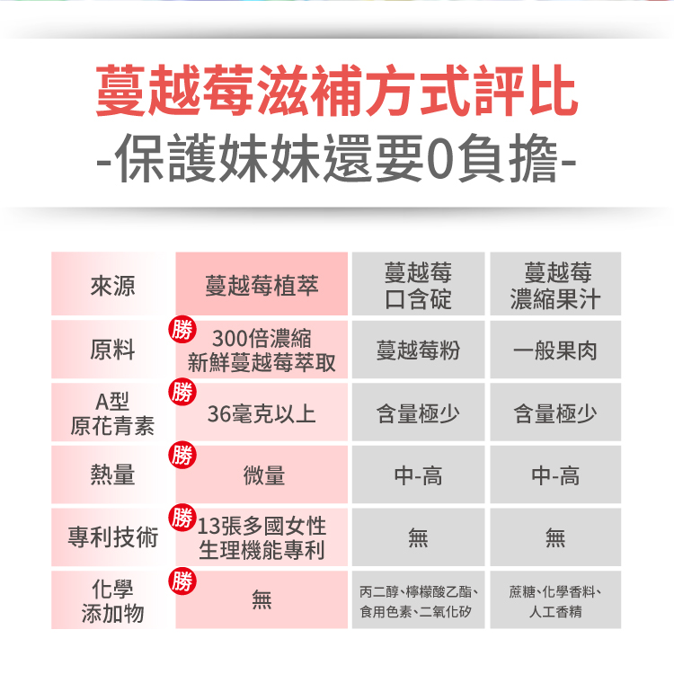 內容物名稱(成分):蔓越莓萃取粉(蔓越莓萃取物、麥芽糊精、玉米澱粉)、洛神花萃取粉(洛神花萃取物、麥芽糊精)、嗜酸乳桿菌Lactobacillus acidophilus原產地(國):台灣