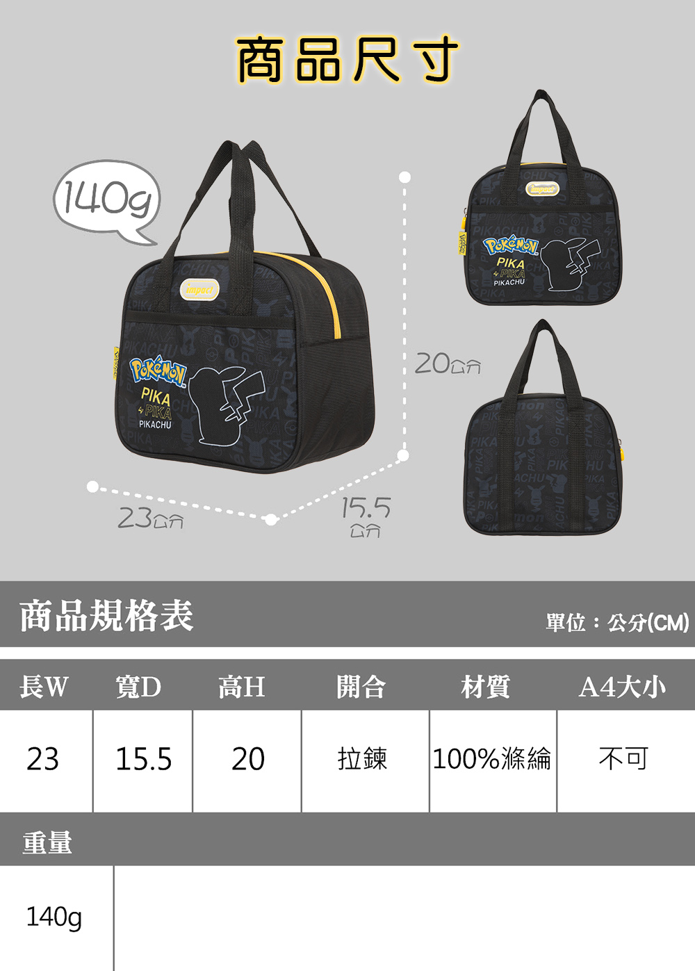 商品特色LOGO反光標,採用美國3M強力反光物料,增加孩子行走安全印刷採用環保油墨大容量內袋,寬底設計,好收納完整收納空間,讓您的寶貝使用更加便利無負擔防潑水布料材質,耐用、耐髒又好清潔寶可夢皮卡丘圖案增加童趣「IMPACT怡寶」童書包品牌第一選擇,守住孩子的健康, 怡寶將引領小朋友們環保愛地球,團隊用心研發一系列學用配件商品~如午餐袋,筆袋, 卡套, 束口袋等, 更有 Tritan 水杯 -使用通過美國FDA認證的最新塑料材質之環保隨身水瓶, 讓寶貝天天開心上學, impact 怡寶幫您嚴格把關,讓小寶貝健康快樂的成長!
