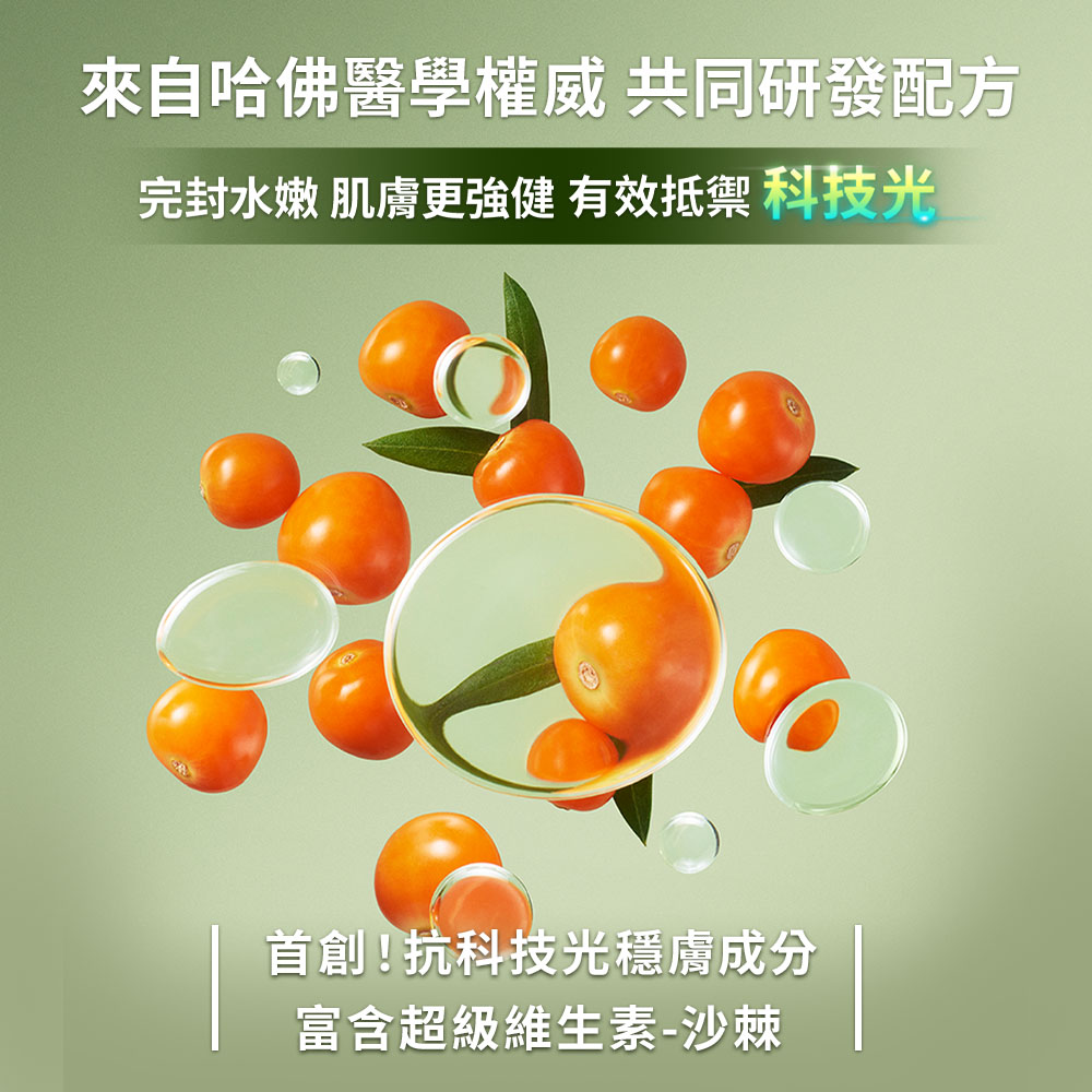 產品成分:1.首創添加「抗科技光穩膚成分」:源自超級維生素沙棘,改善科技光造成的肌膚不穩定2. 濃萃靈芝:舒緩敏感泛紅,肌膚更強健3. 玻尿酸特殊低分子和植萃甘油:肌膚水潤細膩,柔嫩飽滿有光澤4. 天然來源角鯊烷+橄欖油:強化肌膚保濕屏障,更持久鎖水