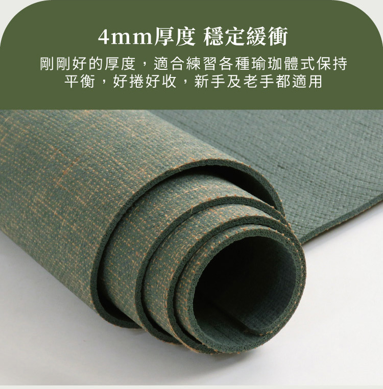 舒適止滑並安全無毒,4mm厚度適合練習各式瑜珈體式