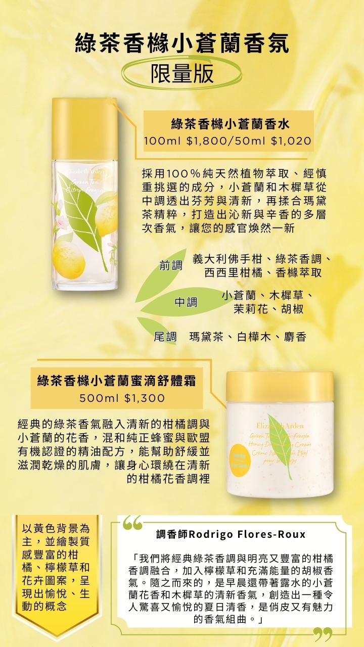 前調:義大利佛手柑、綠茶香調、西西里柑橘、香櫞萃取