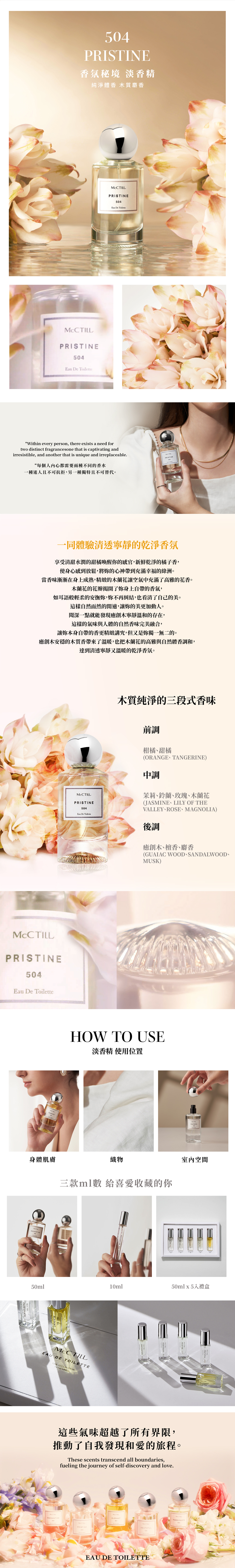 甜橘-木蘭花-癒創木享受清甜水潤的甜橘喚醒感官,當香味逐漸成熟,木蘭揭開自身香氣輕柔安撫著自己。而尾韻的木質香與木蘭高雅調和,形成清透寧靜又溫暖的乾淨香氛。 前調甜橘、柑橘Tangerine、Orange中調木蘭花、茉莉、鈴蘭、玫瑰Magnolia、Jasmine、Lily of the valley、Rose後調癒創木、檀香、麝香Guaiac wood, Sandalwood, Musk