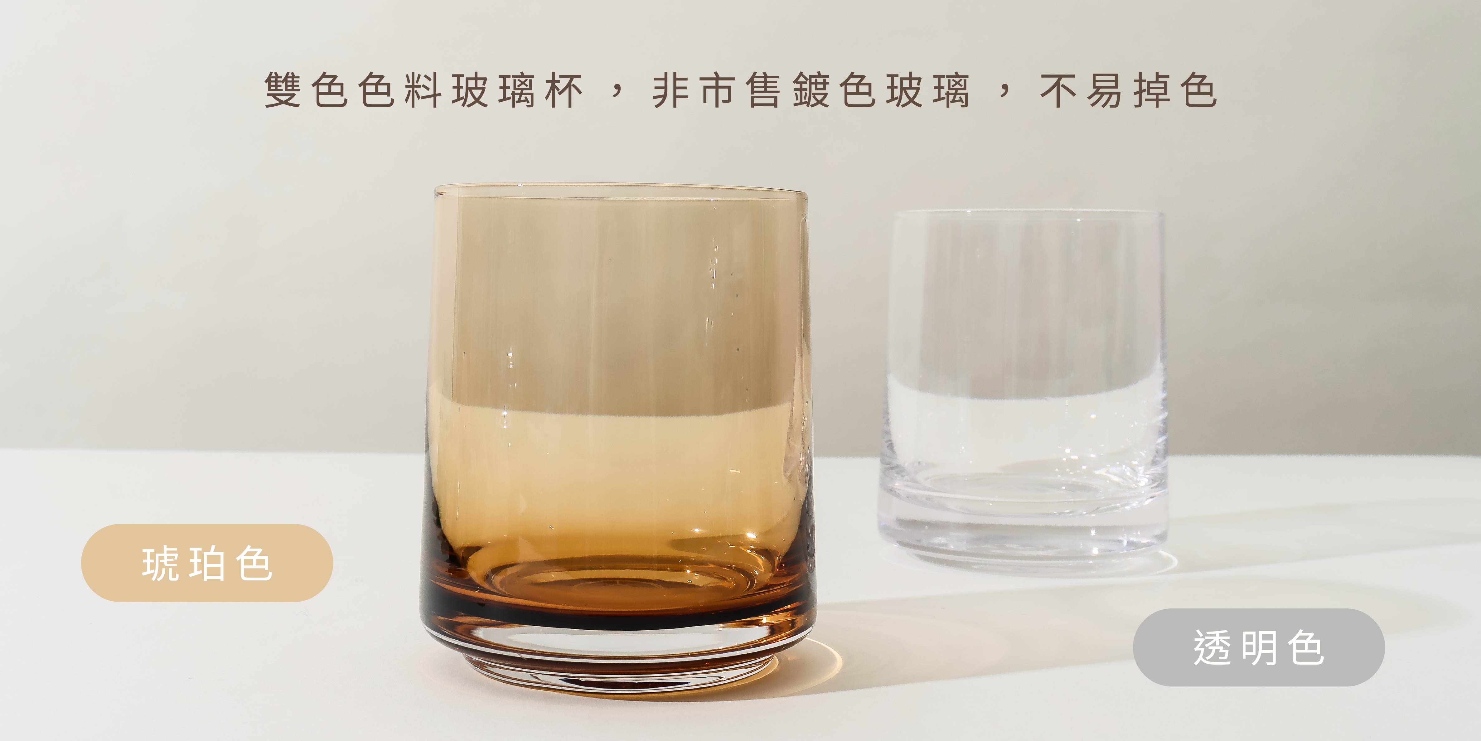 ◦ 精美玻璃杯 (透明色 / 琥珀色)