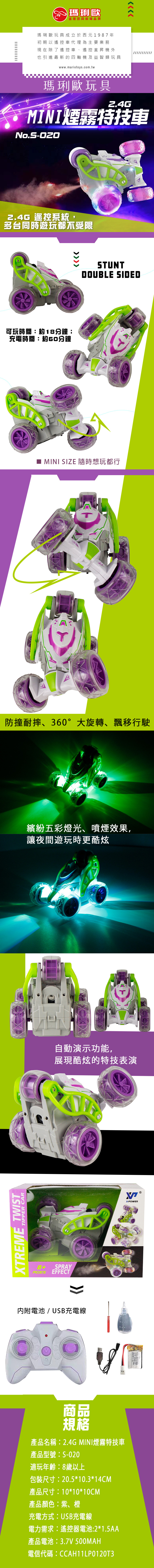 【瑪琍歐玩具】2.4G MINI煙霧特技車/S-020 (紫、橙) | NearMe | 線上送禮平台『獨家支援 收禮者改選禮物』