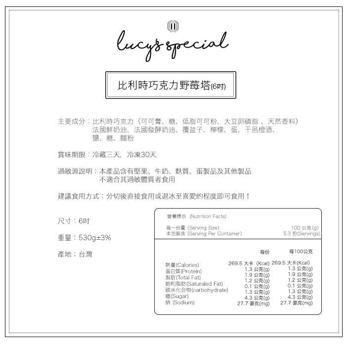 2.商品品名:【LS手作甜點】比利時巧克力野莓塔(6吋)