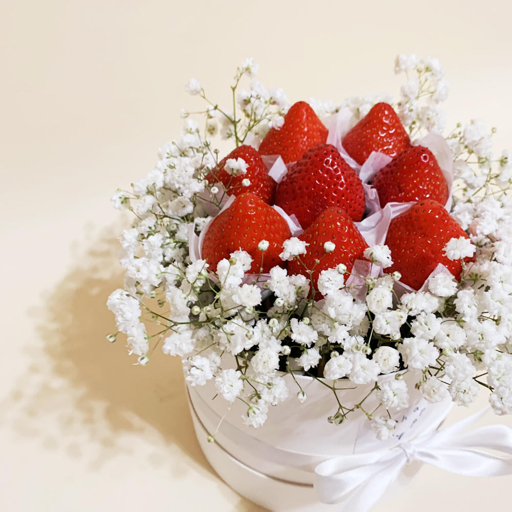 特別選用代表擁有你讓他相當喜悅的滿天星, 與酸甜草莓搭配同時享受草莓的酸甜滋味, 眼睛也能看到美麗的花, 放在辦公桌/餐桌上剛剛好, 一整天都好心情