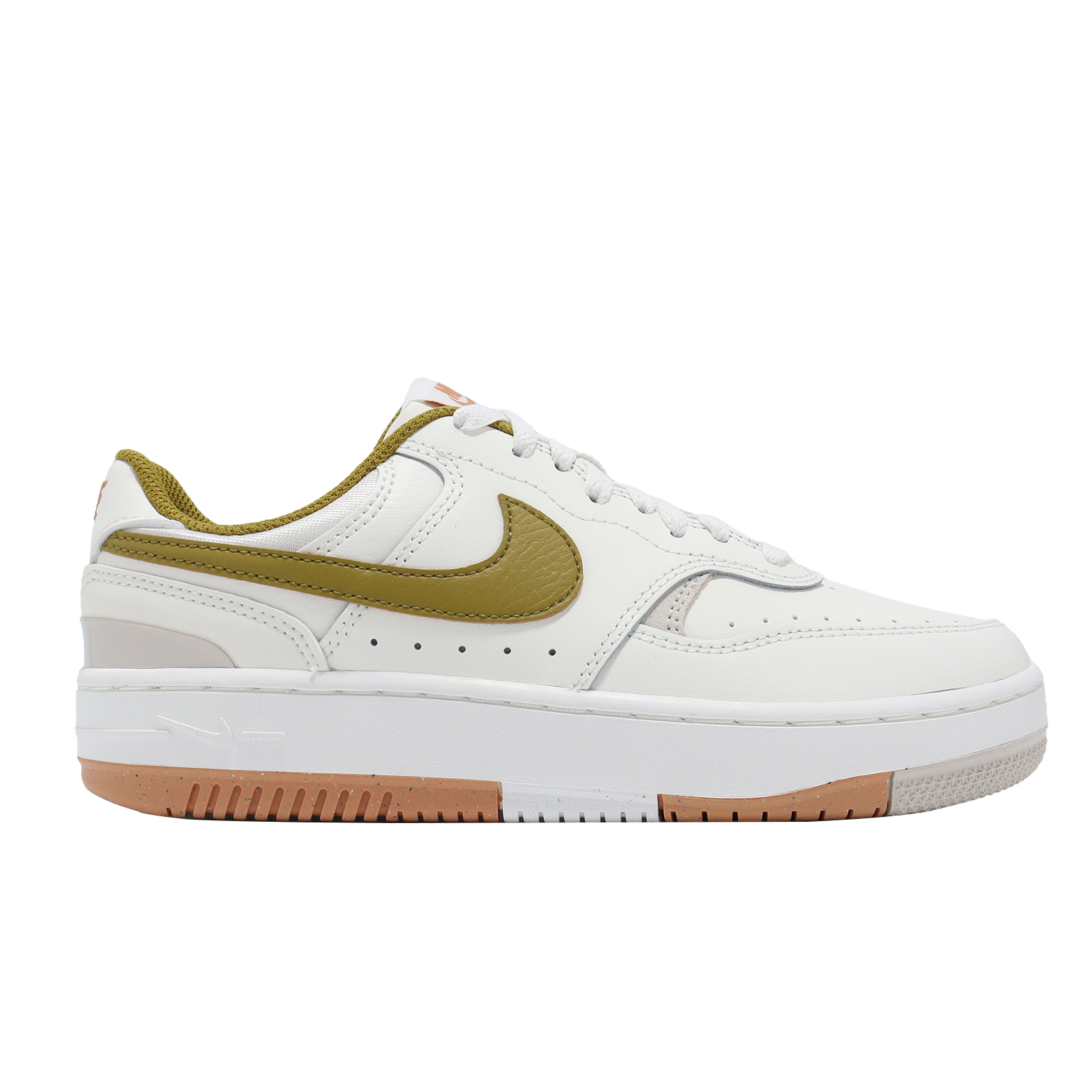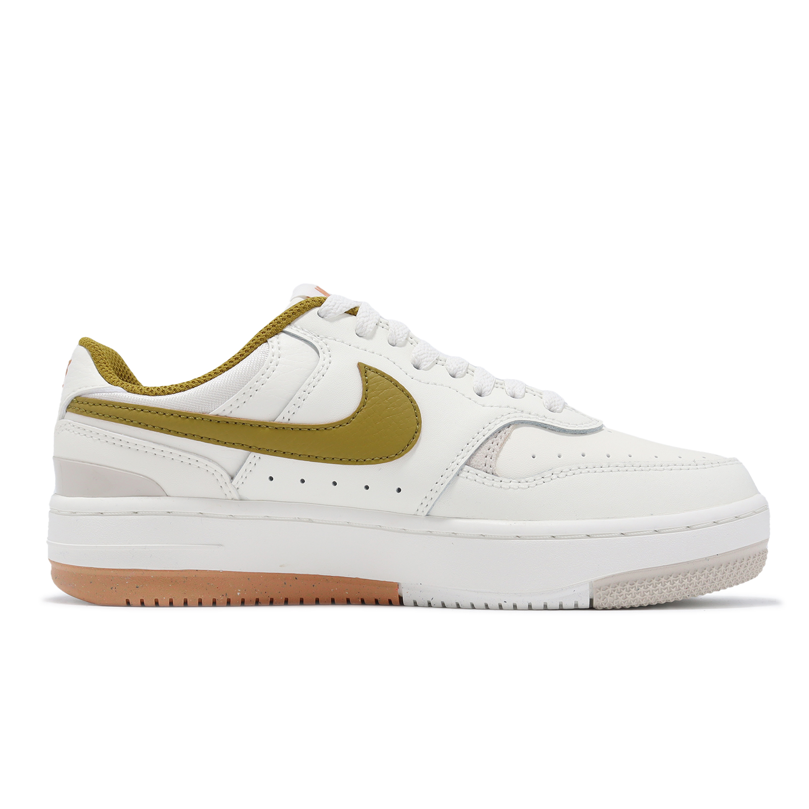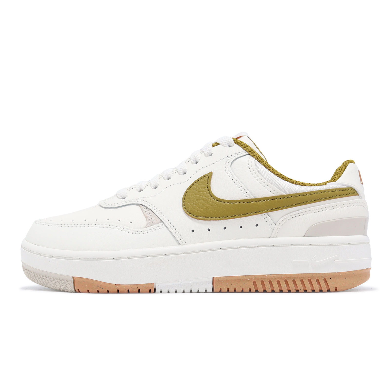 品牌: NIKE型號: DX9176-105品名: Gamma Force版型: 腳寬者建議大半號* Gamma Force 結合麂皮、真皮與合成皮革拼接設計,為經典 AF1 版型注入新的視覺感受。* 外底 Nike Grind 裝飾搭配鞋跟塑膠穩定飾片,增添現代質感。* 低筒鞋身設計,可完整顯露踝處,具備修飾腳型的視覺效果。* 中底微增厚設計,實際著用後增高效果約為 3.5 cm。* 部分材質使用環保原料製成。