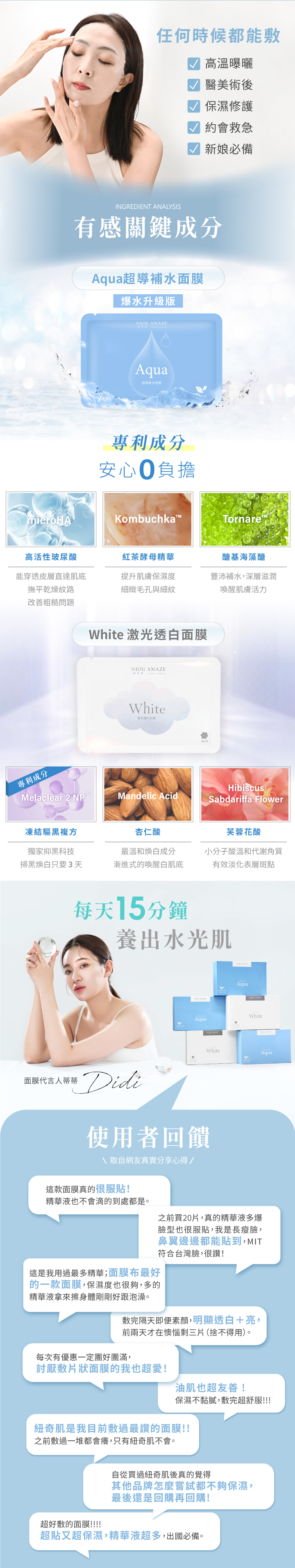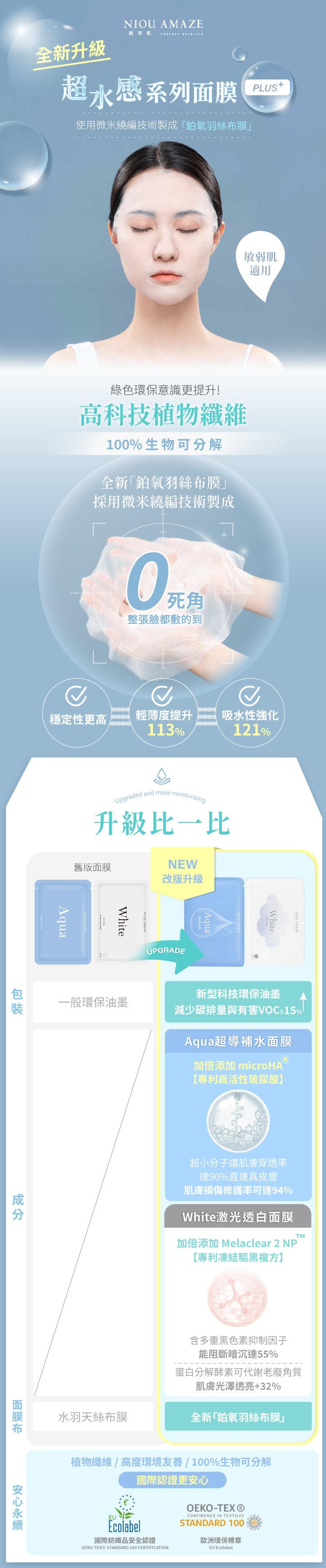 🌱【 產品重點-Aqua超導補水保濕面膜 】✧補水修護二合一✧添加專利高活性玻尿酸、紅茶酵母發酵精華✧新升級配方,更服貼更保濕