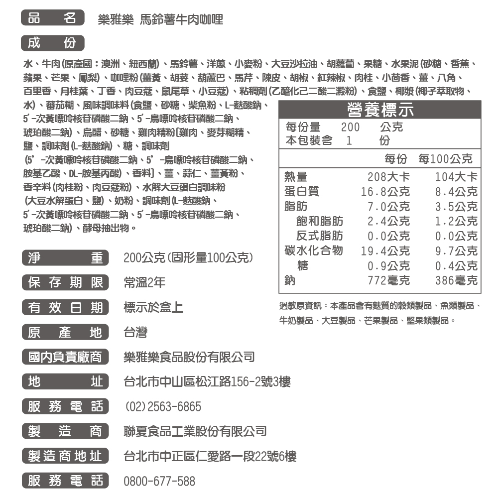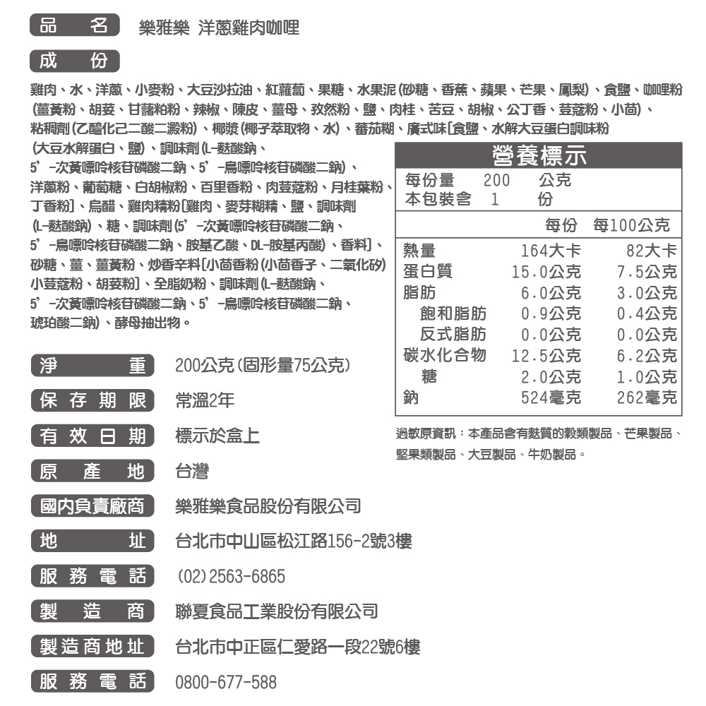 品名:樂雅樂媽媽咖哩系列 6包