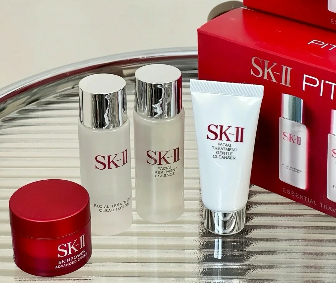 📦商品內容📦1. SK-II 暢銷旅行組(全效活膚潔面乳 20g、亮采化粧水 30ml、青春露 30ml、致臻肌活能量活膚霜 15g)2. 祝福卡片3. 質感針織提袋(不挑款)