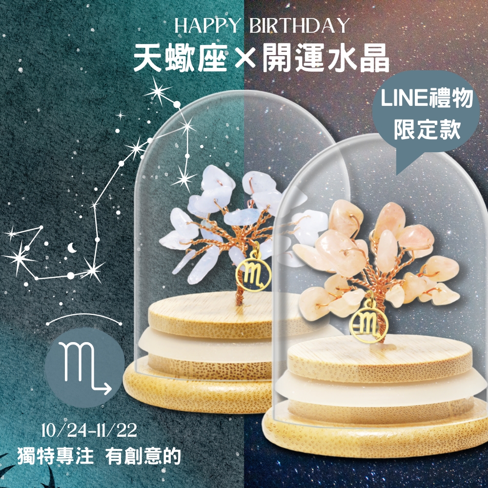 名稱:生日禮物 天蠍座×開運水晶樹 (星座擺飾)材質:星座鈦鋼吊墜+水晶樹尺寸:水晶樹含蓋尺寸約寬5.5x高7.2cm配件:包裝盒x1、手提袋x1