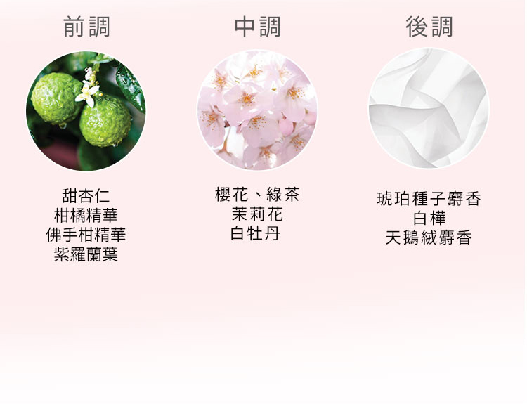中調:櫻花、綠茶、茉莉花、白牡丹花