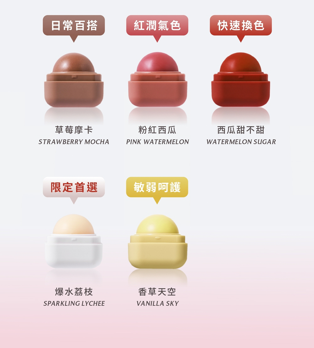 高效潤澤+自然換色,輕巧好攜帶,同時為唇部進行補水、鎖水、保水三重機制,打造專屬唇色,閃耀水潤光澤。