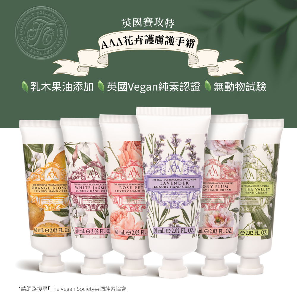 【英國賽玫特】AAA花卉護膚護手霜 60ml (白茉莉、玫瑰花瓣、薰衣草、鈴蘭、橙花、牡丹花、扶桑花)