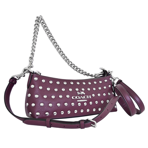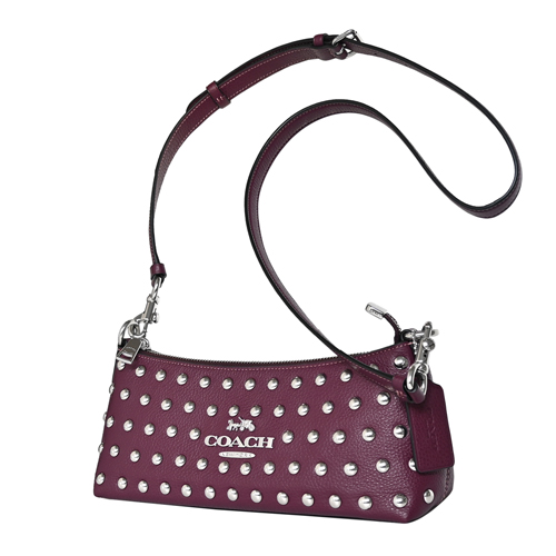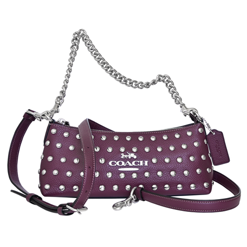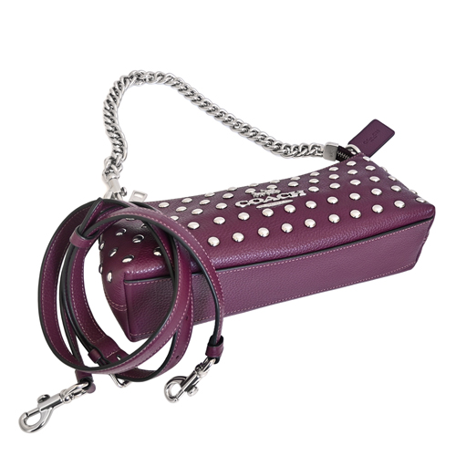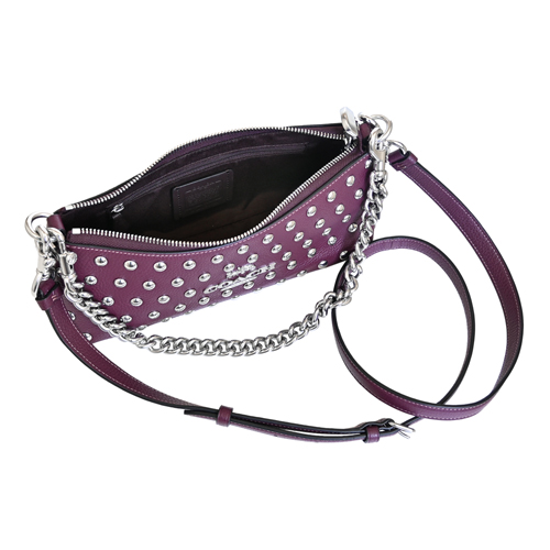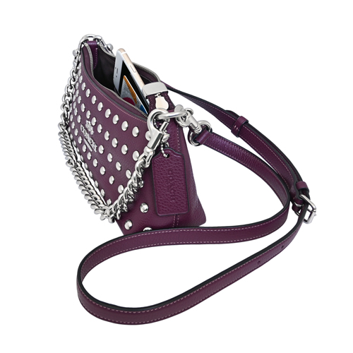 COACH實搭多way小型包款,荔枝紋全皮輔以風格滿版鉚釘貼飾、率性有型,活動式長短雙背帶設計可手提、側肩背、亦可斜背,橫式寬型拉鍊開合好收納,肩背優雅隨興有型、日常斜背亦百搭。(圖片包包內iphone 6手機及卡片僅供包款收納空間參考用,不包含在商品內容)