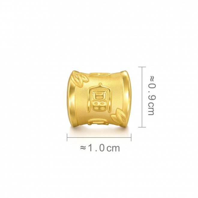 足金串珠以幸運富貴竹為靈感設計,採用硬金電鑄工藝,呈現精緻立體的竹子造型。「富貴竹」是財富的象徵,特別結合「富足一生」的古字繪圖,別具韻味,更寓意「招財進寶、富貴吉祥」,為佩戴者帶來美好祝福。