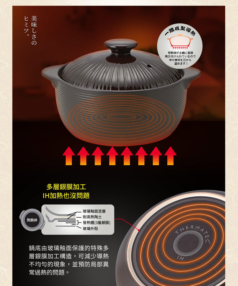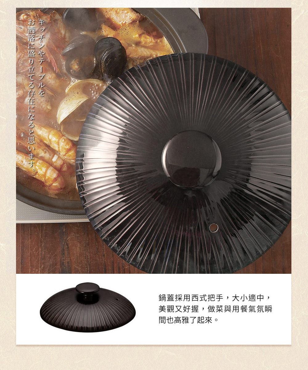 ◆IH全功能,適用各種爐具◆玻璃釉面導熱快且均勻◆紅外線功能有效保留食物營養◆吸水率0.5%以下,氣味不殘留◆耐溫差500℃以上,品質優良◆與日本同步發售