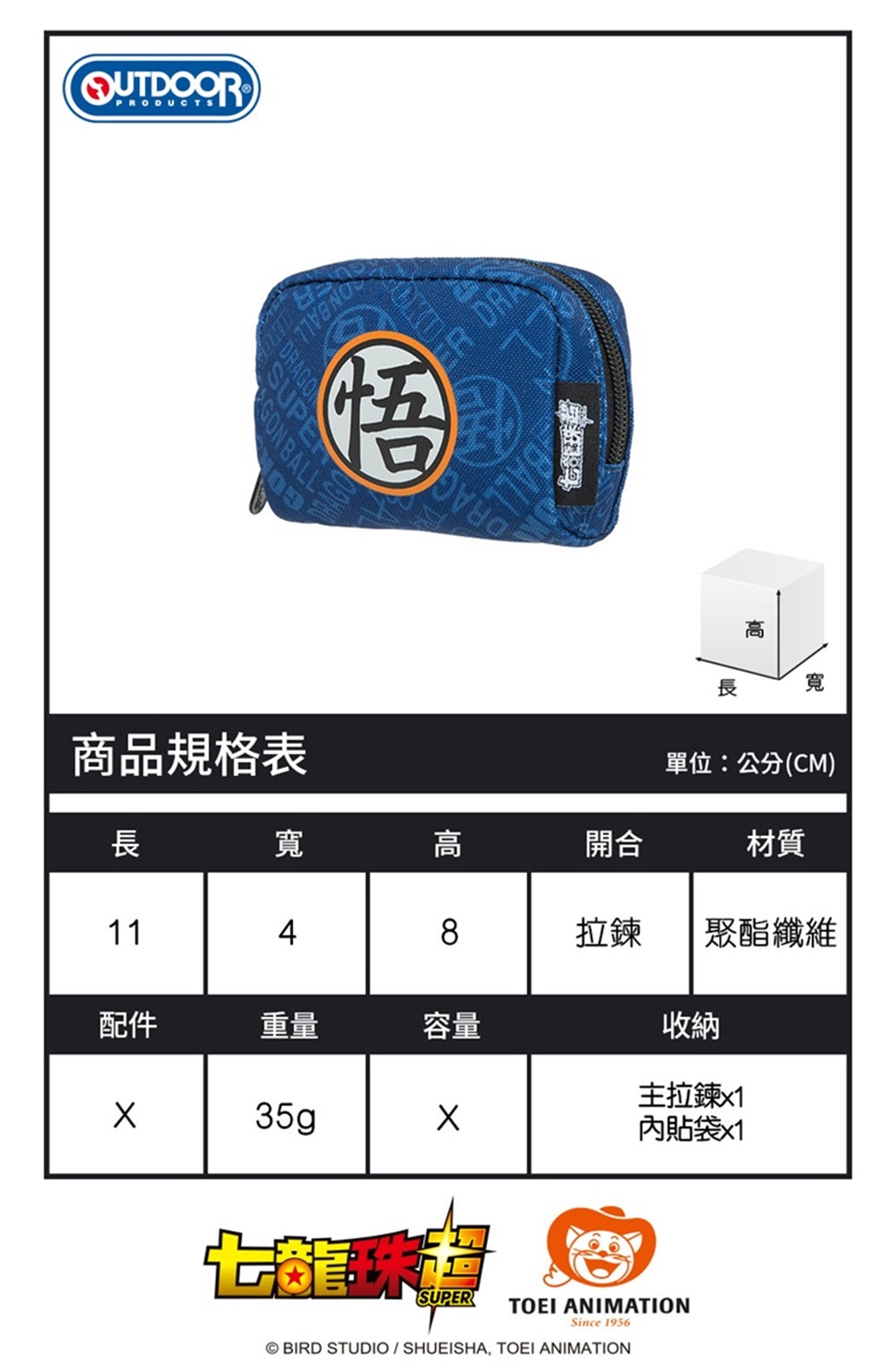 [452是我愛]【OUTDOOR】DRAGON BALL SUPER七龍珠超-悟字單層零錢包-深藍