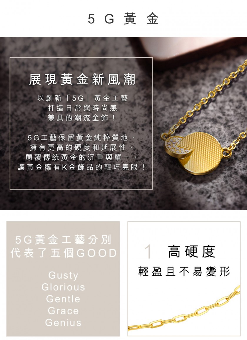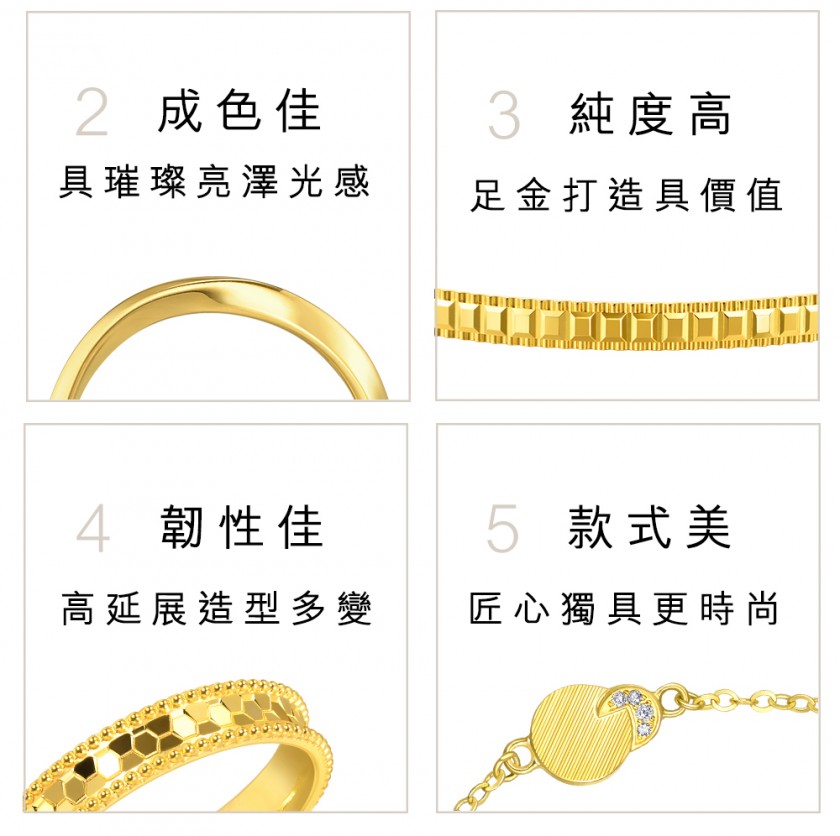 .以創新5G工藝提升黃金硬度.採用微鑲技術鑲滿閃耀美鑽.蘊含為愛守護一生的幸福寓意
