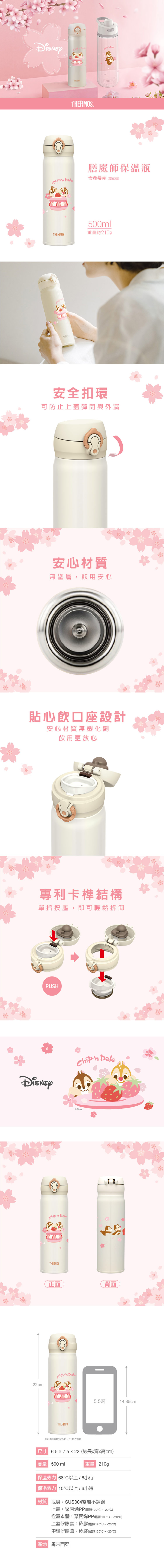 THERMOS膳魔師不鏽鋼真空保溫瓶500ml(JNL-502CAD-CBPW) 奇奇蒂蒂櫻花篇